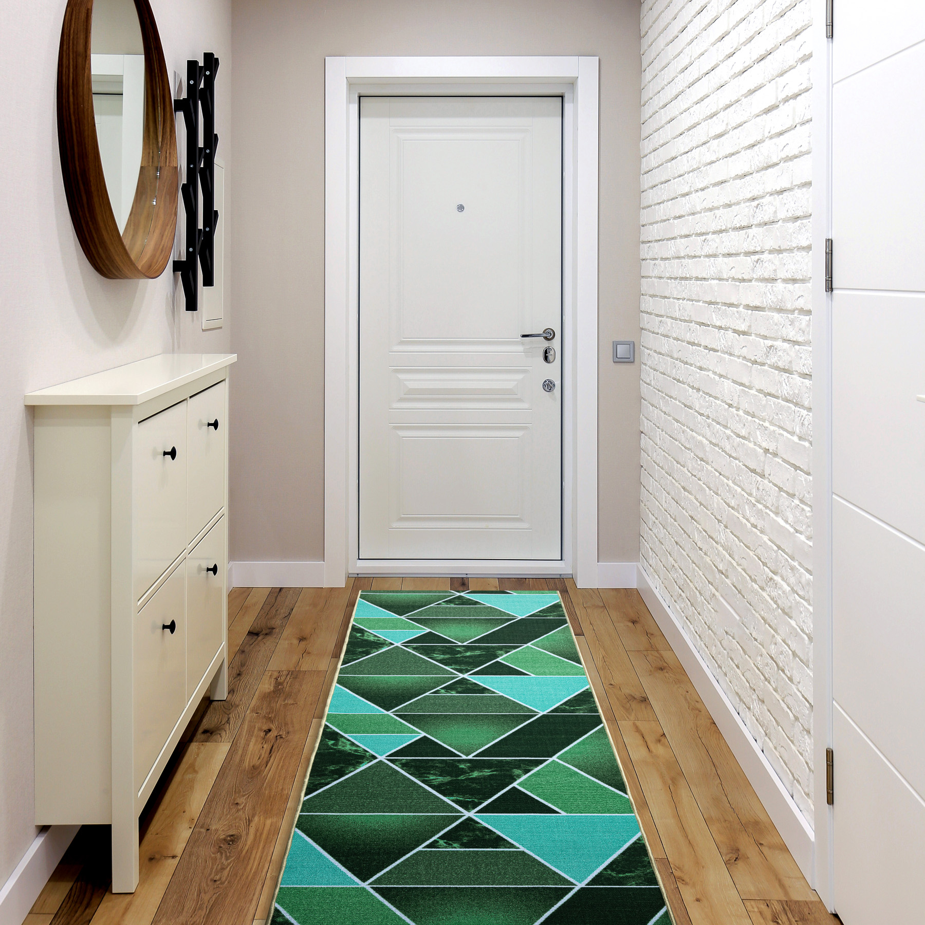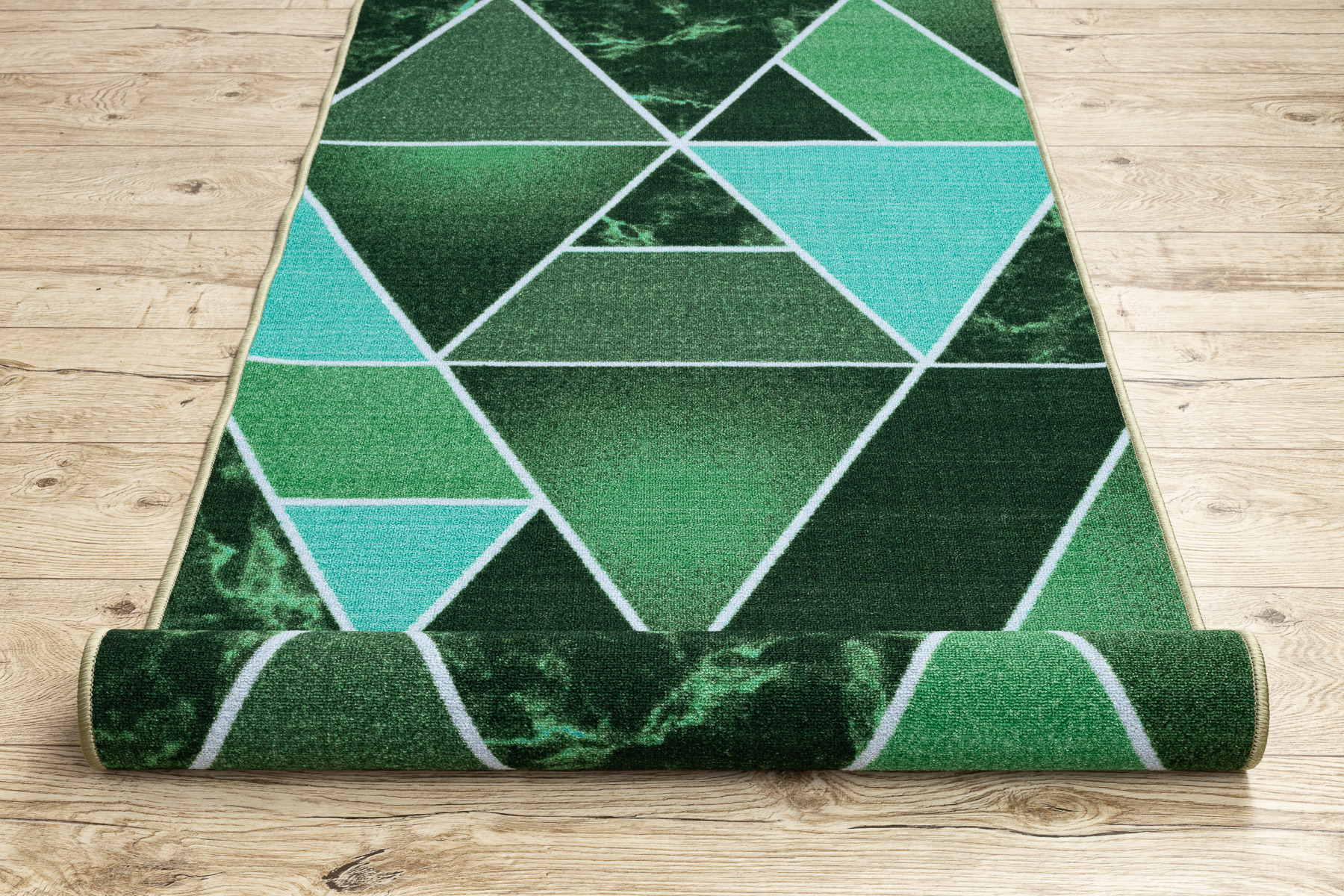 Läufer rutschfest TRÓJKĄTY Dreiecke, gummi grün 90cm