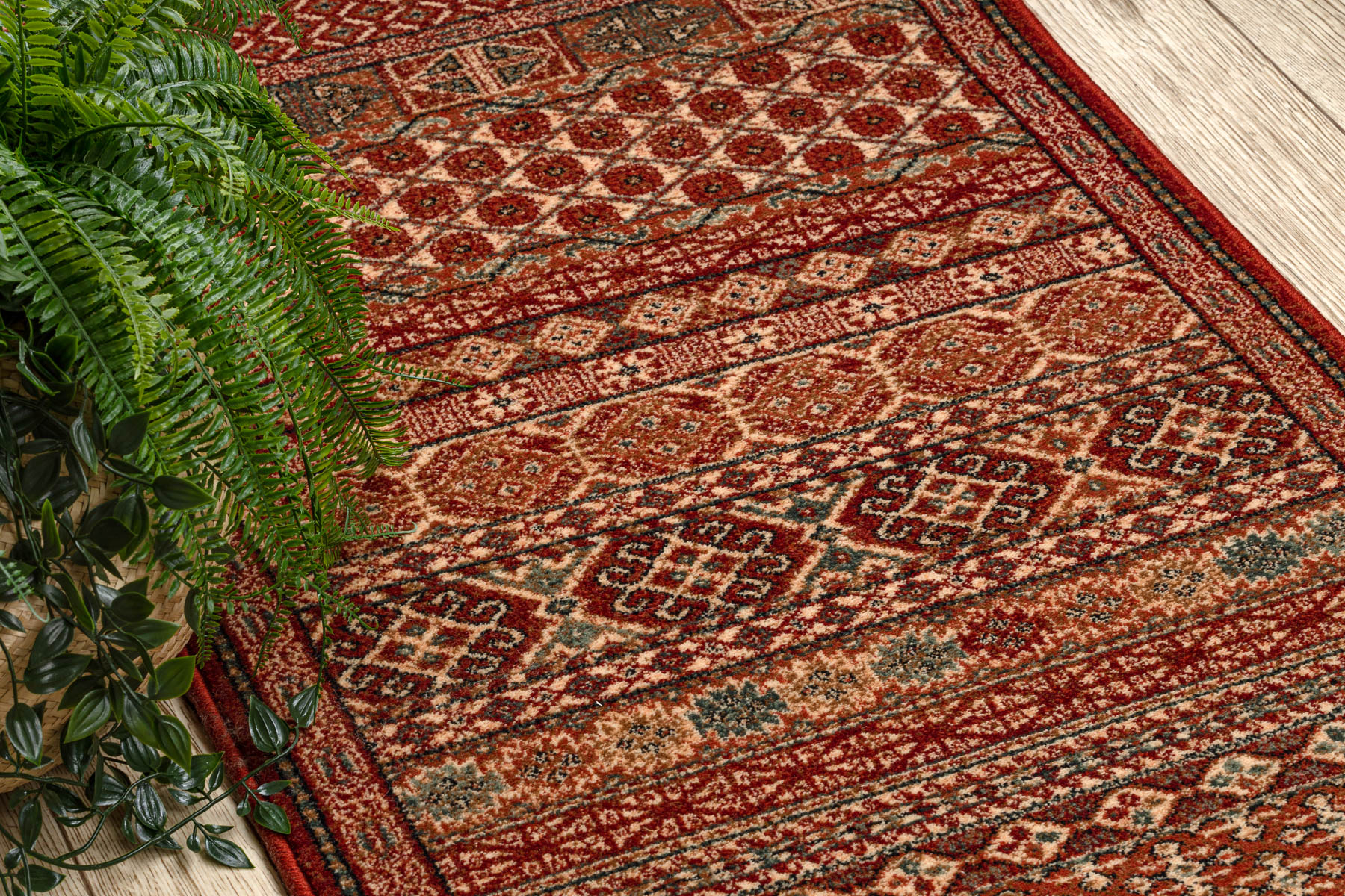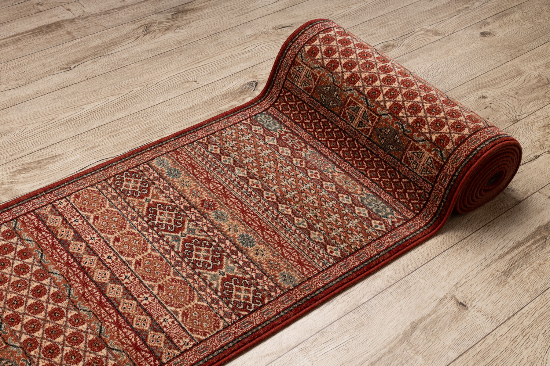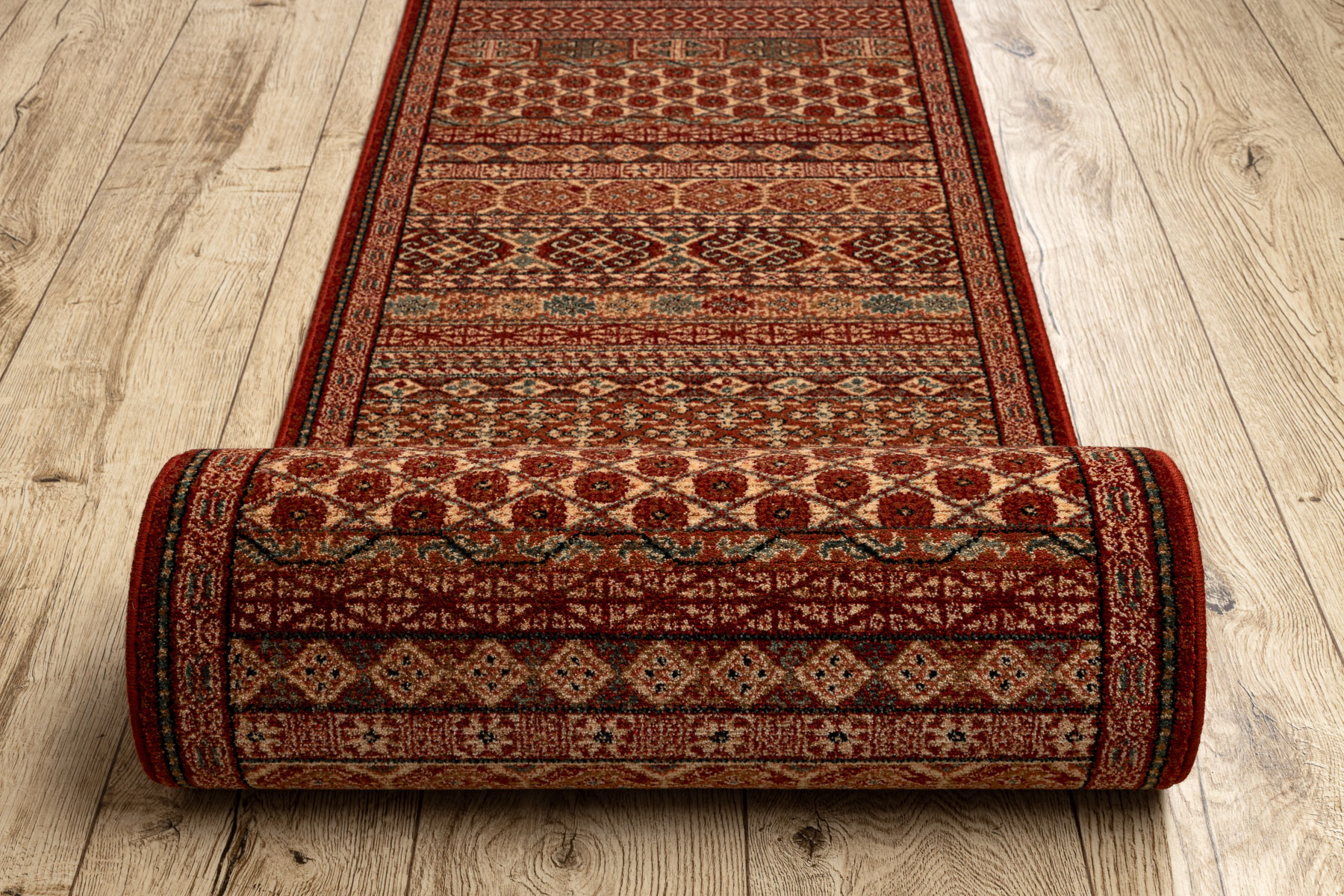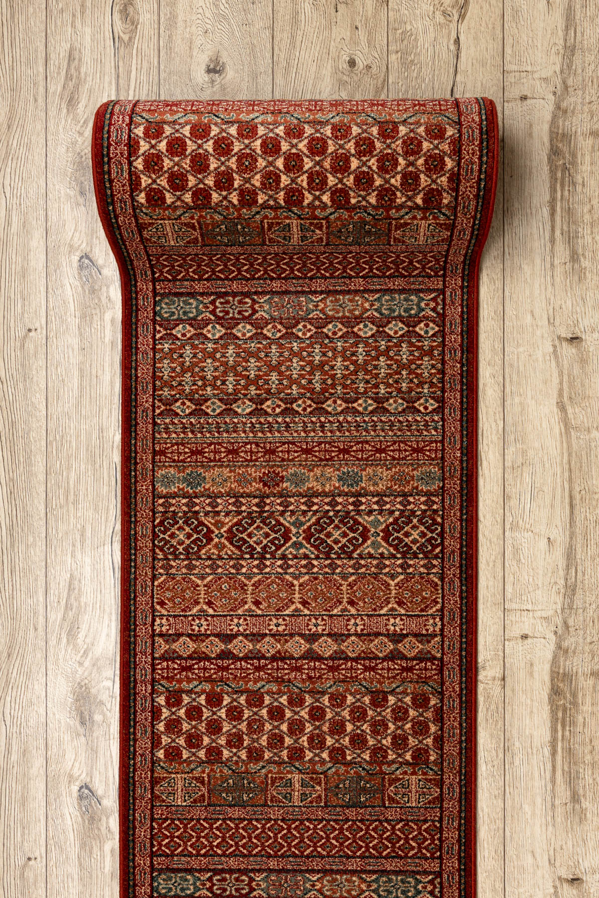 Wolle Läufer KASHQAI 4334/300 orientalisch rotwein / grün 67cm