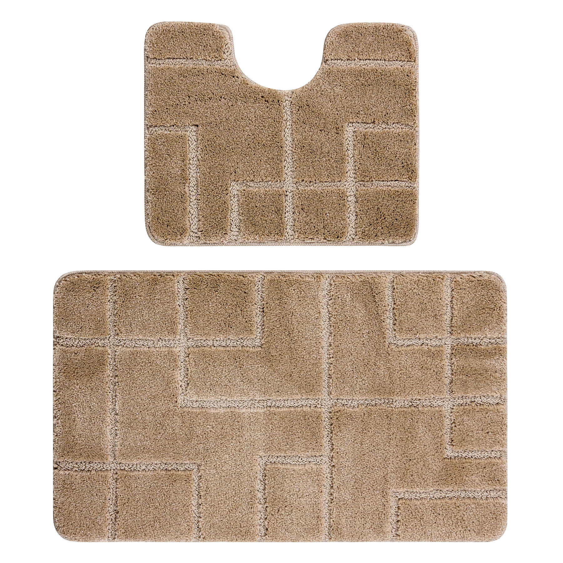 Zweiteiliges Badezimmerset SUPREME LINES, Linien, rutschfest, weich – beige